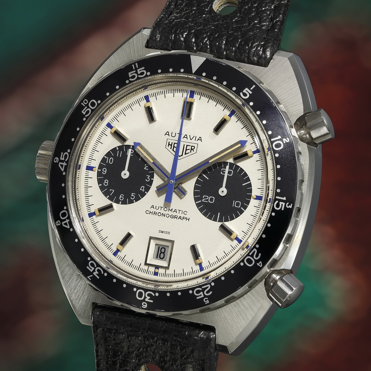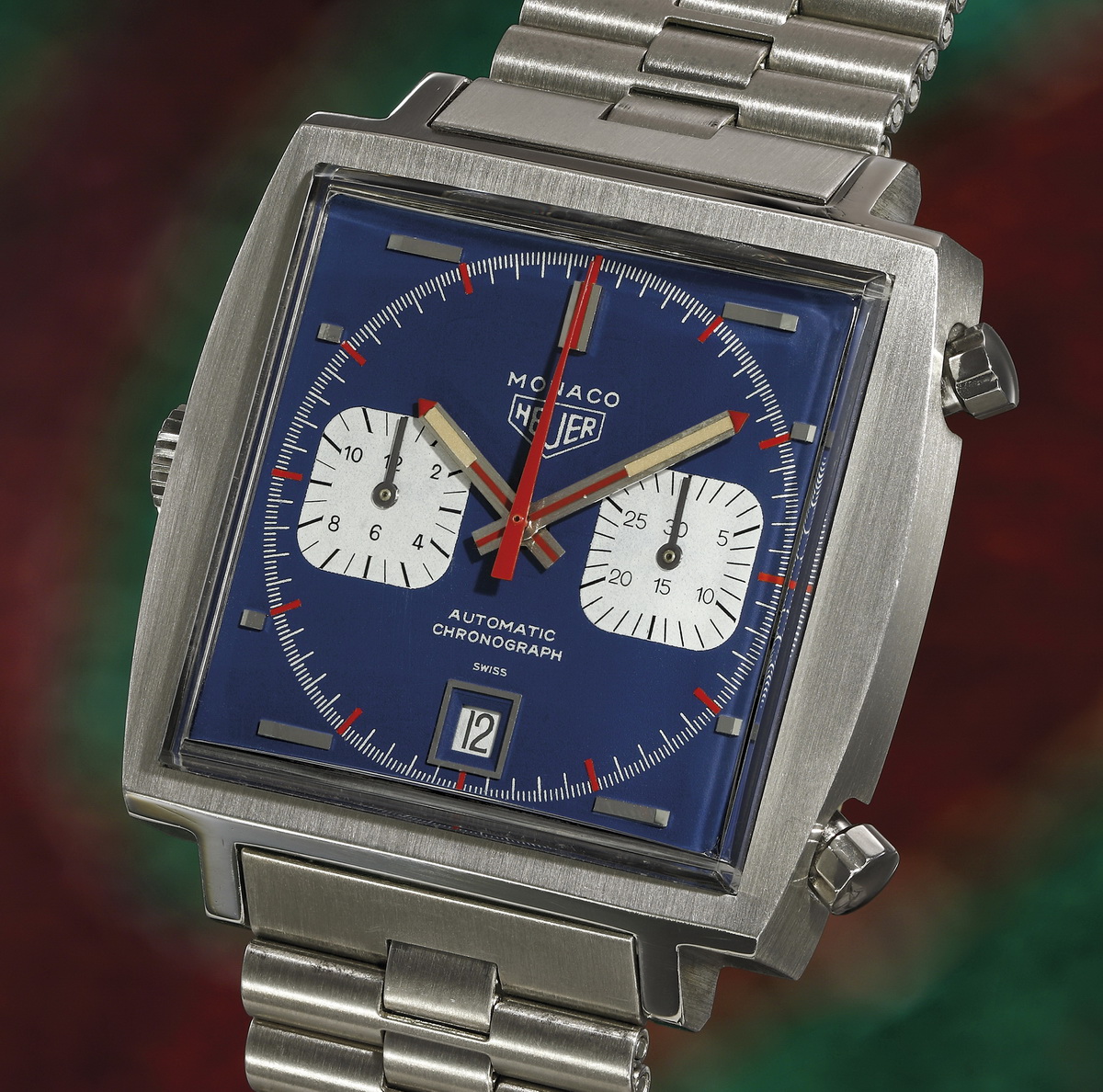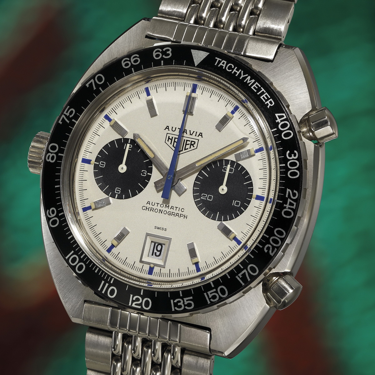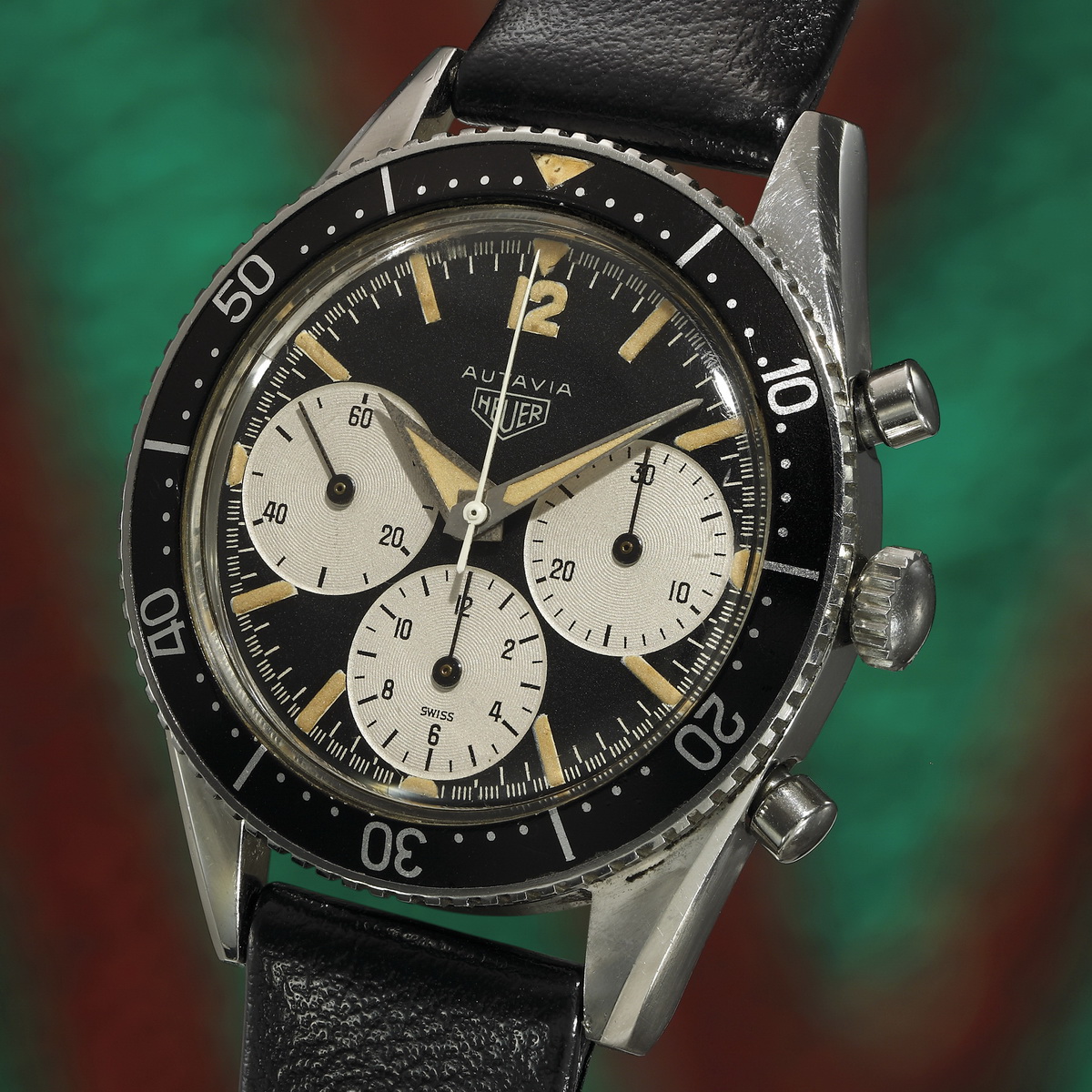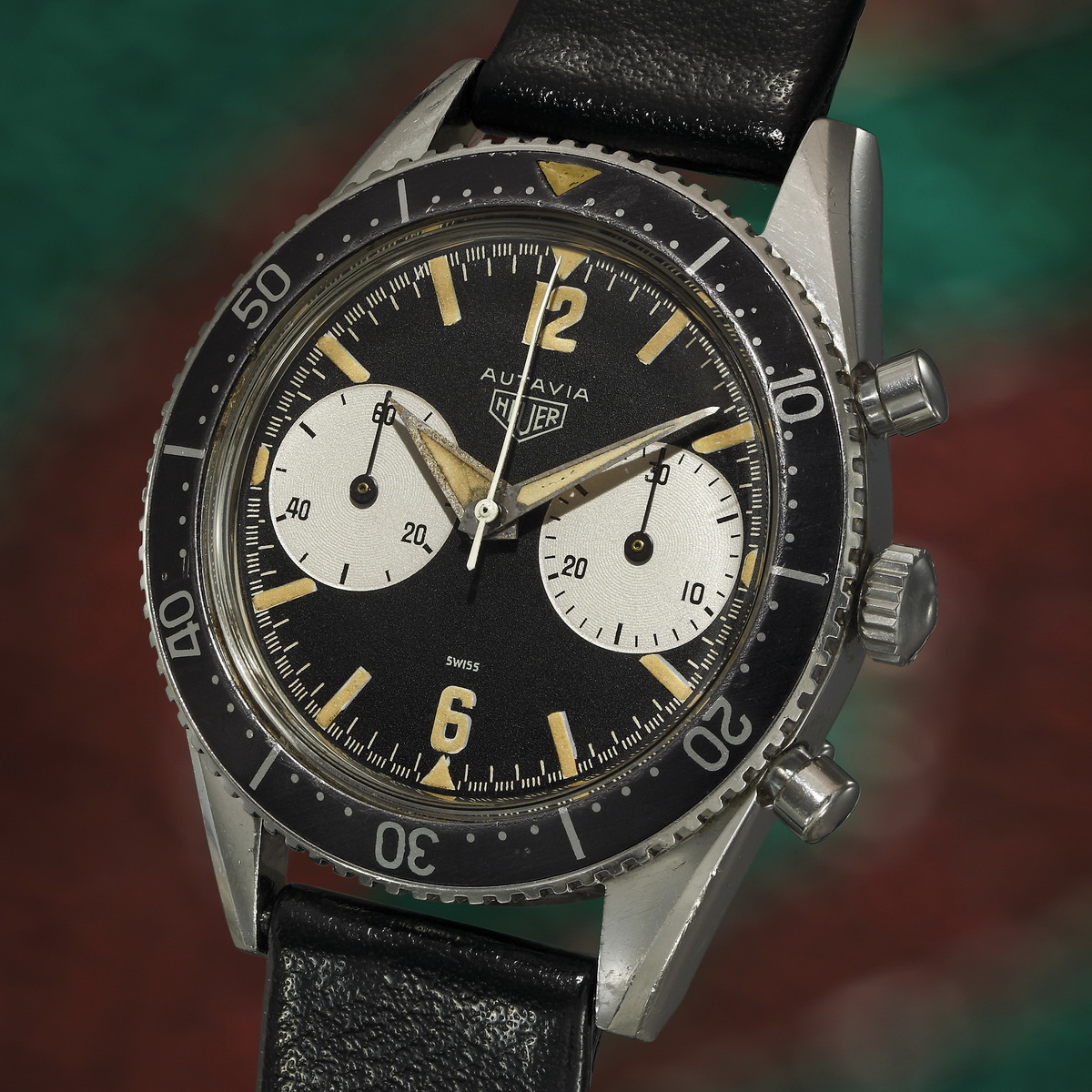 Phillips is presenting this auction as the “Heuer Parade”, and has produced a magnificent printed catalog with full details and photographs of the watches. This printed catalog is presented in seven chapters, each of which presents a different aspect of Heuer’s history (for example, motor sports, race timing and military-issued watches).